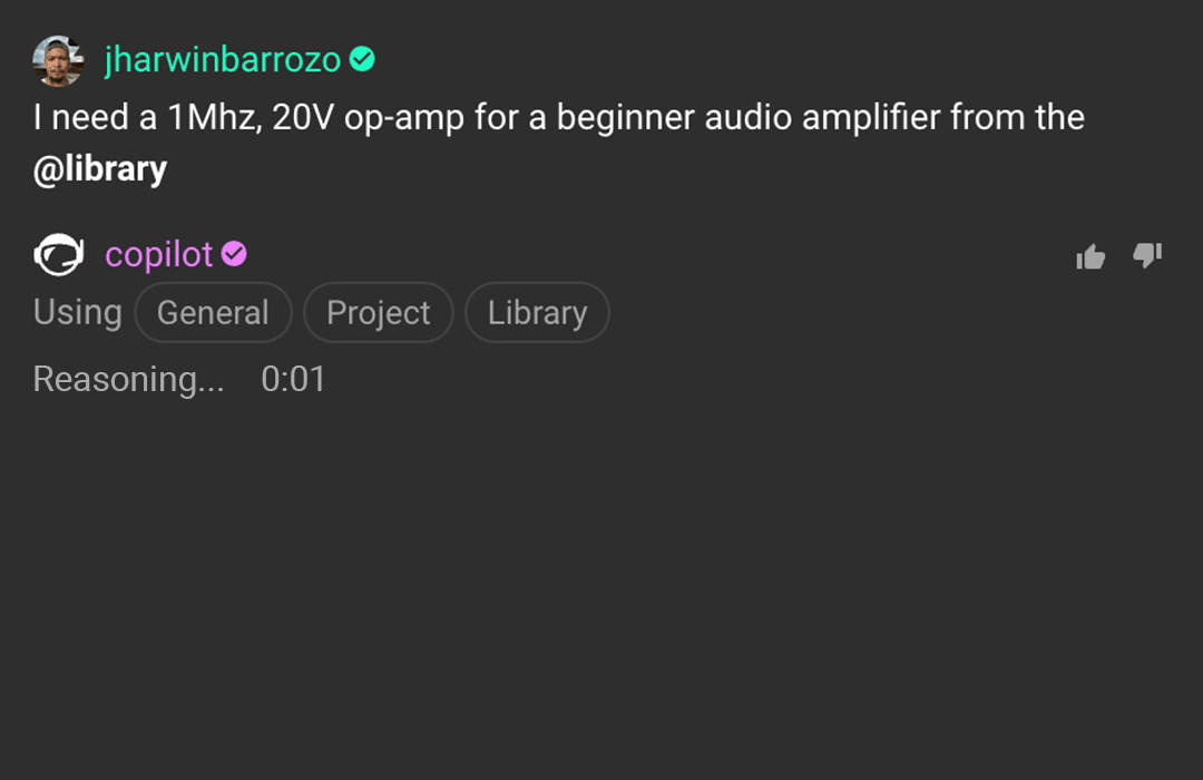 You’ll see a live execution trace—how it searches, filters, ranks, and substitutes. It’s like watching a checklist unfold in real time. Whether you’re validating a part or building a schematic from scratch, Copilot shows exactly what it’s doing, and why.