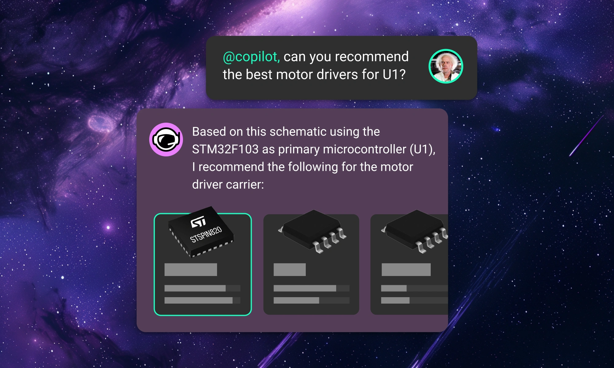 Streamline component research with Flux Copilot. Copilot links to components for quick part research, offering multiple options tailored to your needs, and find part alternatives effortlessly without switching between tabs and platforms.