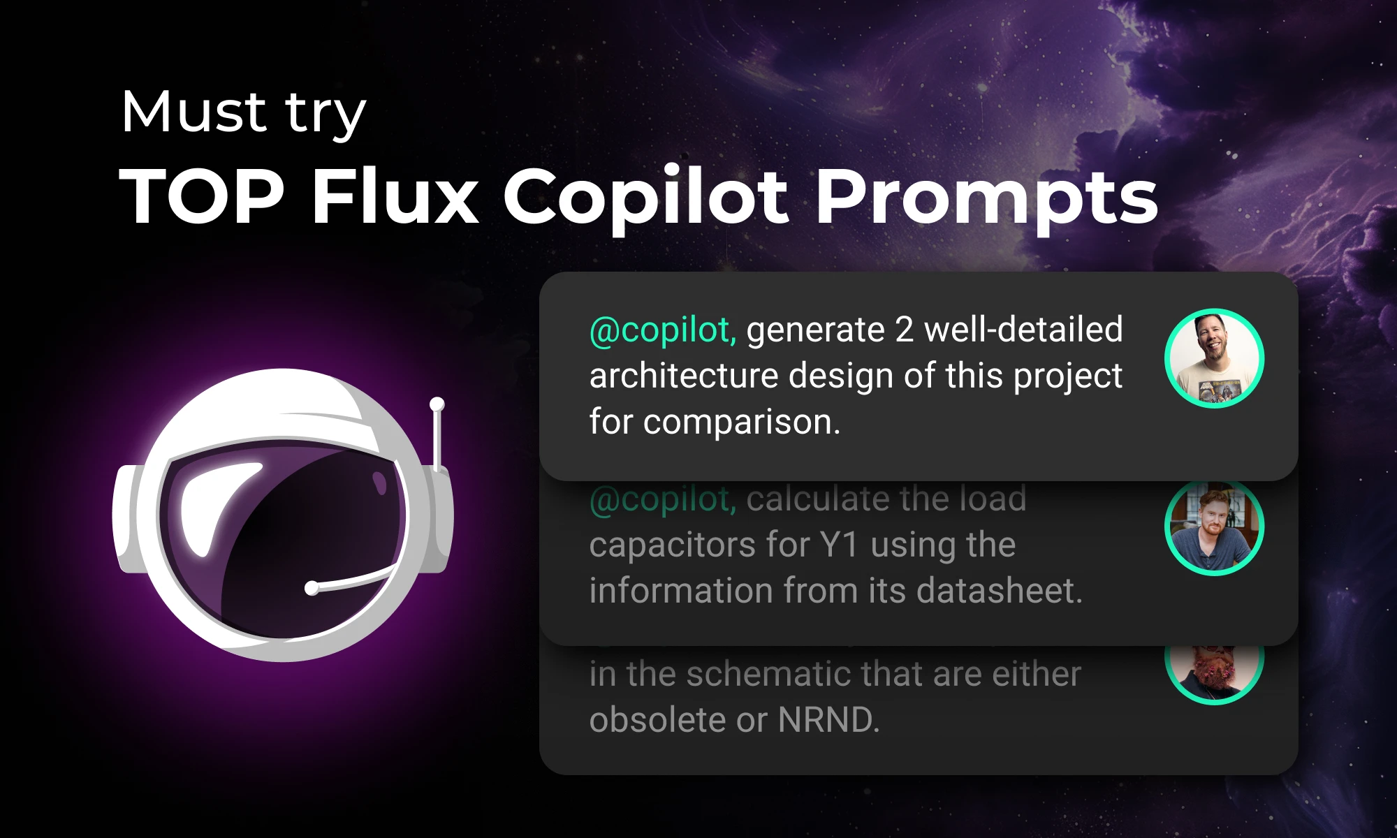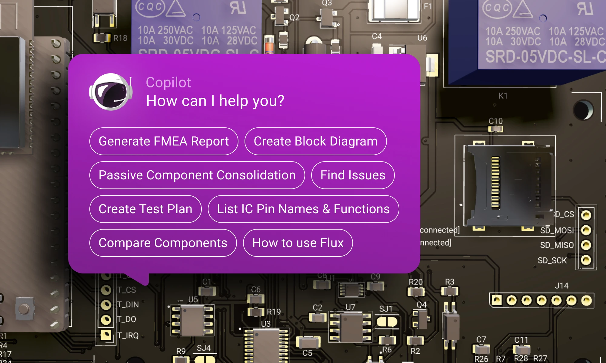 Explore more than 20 new Flux Copilot prompts for hardware design. Accelerate brainstorming, component selection, validation and design review to streamline your PCB design.