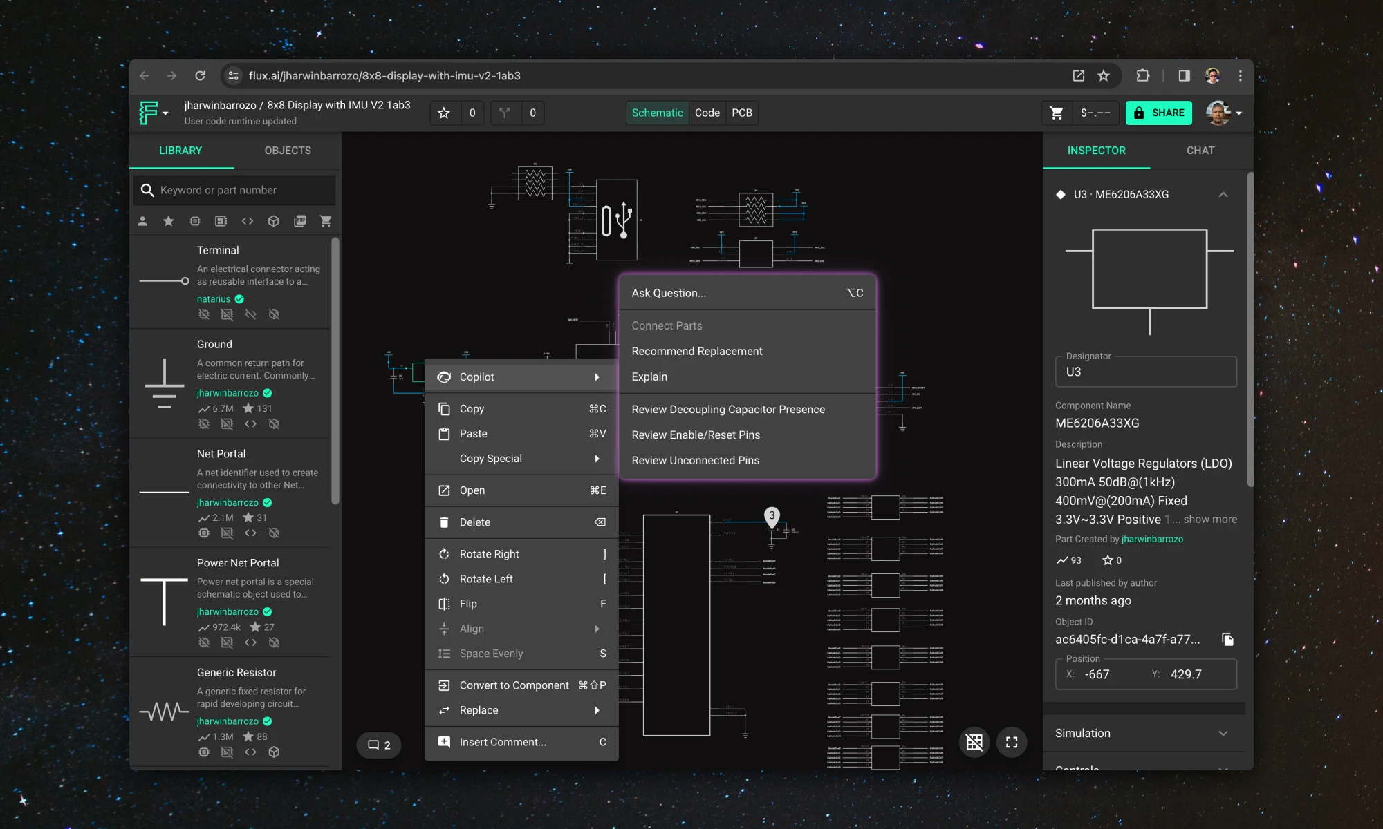 Imagine starting a project with over 800,000+ parts at your fingertips, ready to go without any setup. With Flux community-powered part library, you have everything you need to build at scale —all in one place, with real-time supply chain data, intelligent filters, and powerful AI tools.
