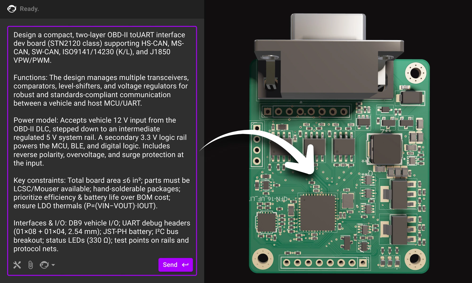 We're excited to reveal a major upgrade - Flux Copilot is transitioning from being a helpful guide to a proactive partner. It no longer just advises but, with your approval, can now wires components together! This is a small step towards fully generative AI, reducing the time and complexity often associated with component connections.