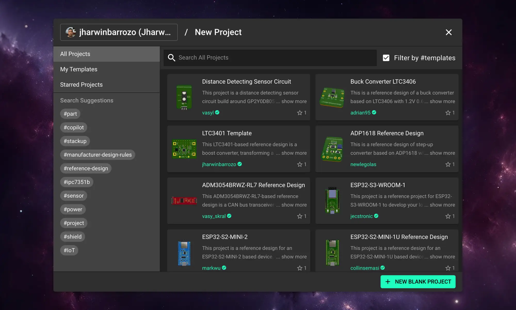 Flux is like a reusable starting-point library for hardware design. Browse templates and public projects, fork one that matches your use case, then modify and expand it as your design evolves.